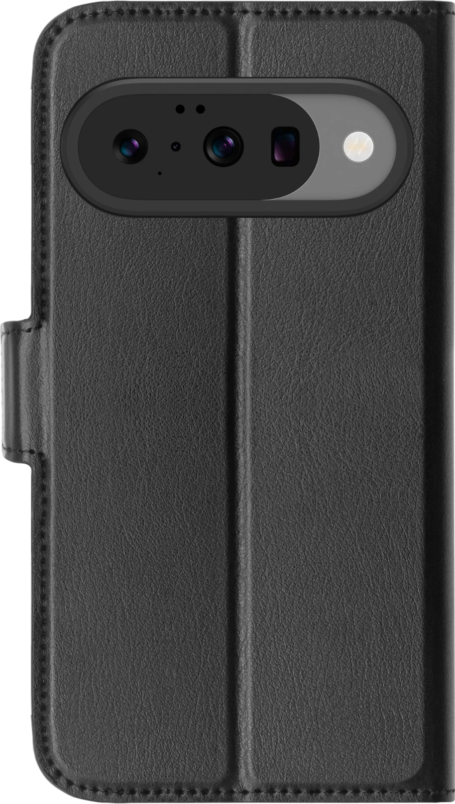 Die Klapphülle umfasst drei Kartenfächer mit Platz für bis zu fünf Kreditkarten und einen Magnetverschluss zur sicheren Aufbewahrung. Die faltbare Rückseite dient auch als horizontaler Ständer für freihändiges Videoschauen.